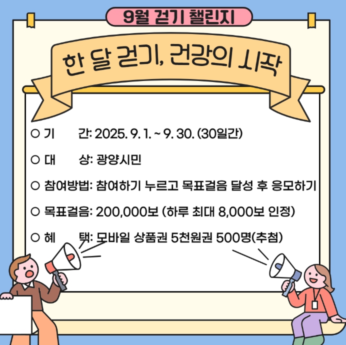 반미순 광양시 건강증진과장은 “걷기는 남녀노소 누구나 쉽게 실천할 수 있는 최고의 건강 운동”이라며, “이번 챌린지를 통해 시민들이 일상 속에서 걷기를 즐기고 건강한 생활 습관을 형성해 나가길 바란다”고 말했다.