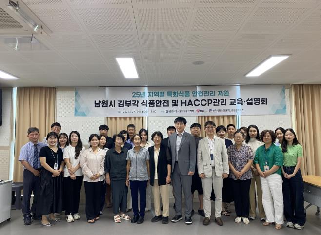 지원사업의 일환인 식품안전 및 HACCP 관리 교육을 8월 27일 남원시 관내 김부각 제조업체를 대상으로 실시됐으며, 이를 시작으로 연내 1회 이상 찾아가는 교육과 맞춤형 상담, 현장 기술지원을 광주식약청과 한국식품안전관리인증원 광주지원이 함께 실시할 예정이다.