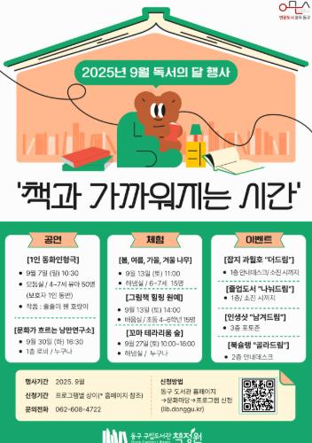 자세한 일정 및 세부사항은 광주동구도서관 누리집 및 전화를 통해 확인하면 된다.