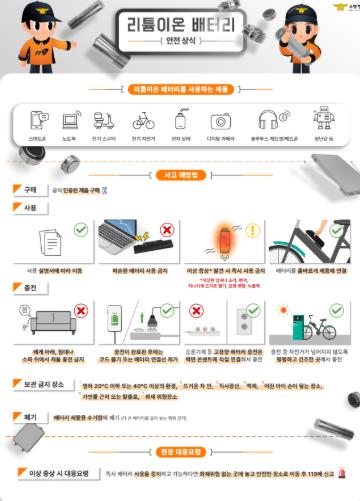 ▲KC 인증 정품 배터리 및 충전기 사용 ▲ 충전 전 손상·습기·고온 노출 여부 확인 ▲충전 상태 수시 점검 ▲완충 후 즉시 분리 및 주변 가연물 제거 등이 있다.