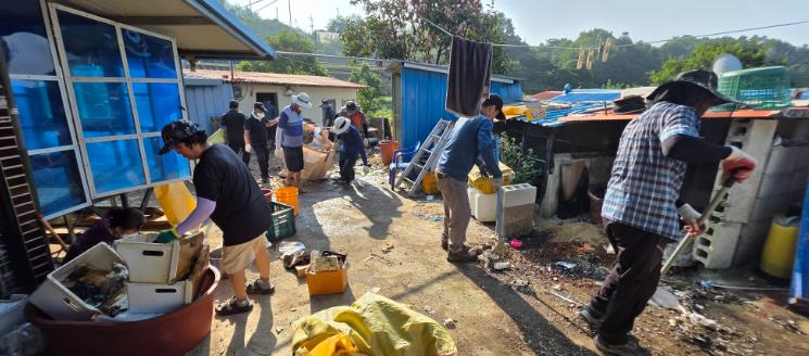 이번 청소는 장애 정도가 심한 장애인 가구를 선정해 각종 쓰레기와 유효기간이 지난 음식물을 치우고, 집 안의 각종 먼지와 묵은 때를 닦아 내며 가재도구를 정리해 쾌적한 주거환경을 만들었다.