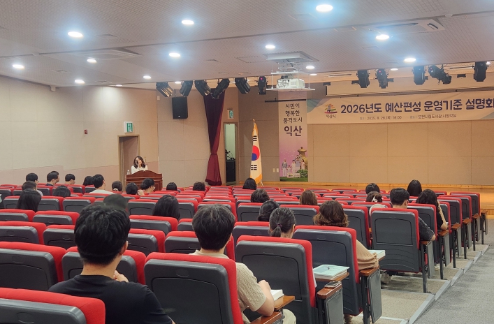 익산시는 28일 모현시립도서관 시청각실에서 '2026년 예산편성 운영기준 설명회 및 세부지침 교육'을 개최했다.