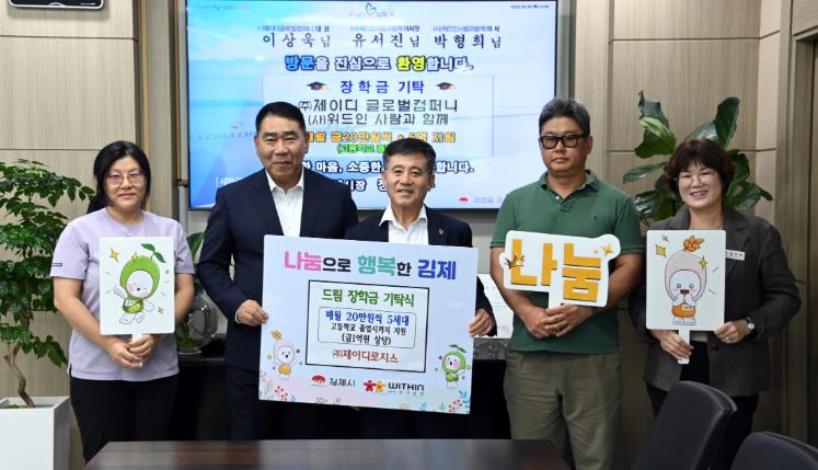 ![]() (사)위드인 사람과 함께, 주식회사 제이디로지스 김제시 취약계층 아동·청소년을 위한 드림장학금 전달식 |