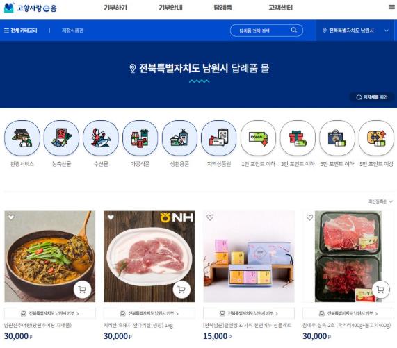 ![]() 남원시 고향사랑기부제 답례품 확대, 총 70종 선보여 |