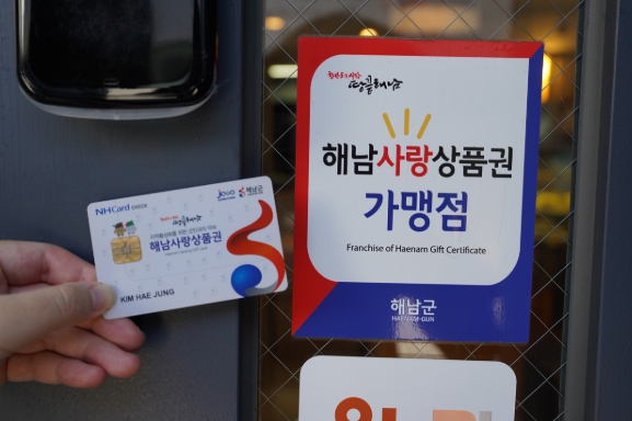 특히 모바일(QR)은 실물카드 없이 해남사랑상품권 사용이 가능해 관광객 등 이용자들의 요구가 늘어나고 있어 군은 모바일(QR) 상품권 가맹점 확대 및 홍보에 적극 나서고 있다.