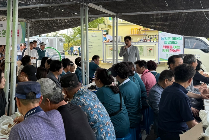 ![]() 이상익 함평군수가 함평군 후계농업경연인에게 격려하는 모습 |
