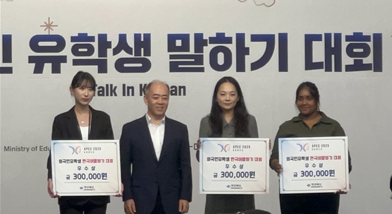 ![]() 'APEC 2025 KOREA' 정상회의 연계행사로 열린‘2025 대학생 모의 APEC 정상회의’ 외국인 유학생 말하기 대회에서 우수상을 차지한 Jiang Yalin양.(사진 왼쪽에서 세 번째) |