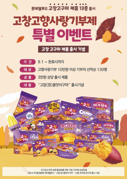 이번 이벤트는 고창고구마를 활용한 롯데웰푸드의 시즌 한정판 고구마 과자 출시를 홍보하기 위해 마련됐다.