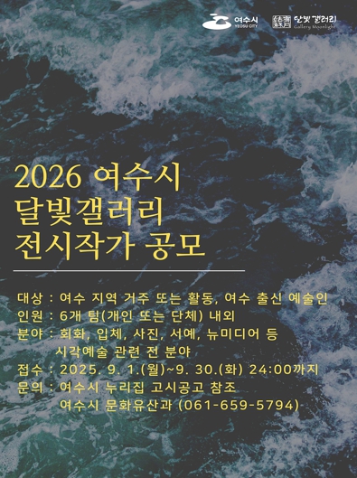 ![]() ‘2026 여수시 달빛갤러리 전시 작가 공모’ 홍보물 |