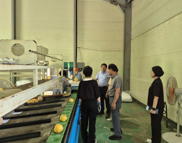 ![]() 관내 배 수출을 위한 선별현장을 찾아 격려하는 곡성군 관계자들 |