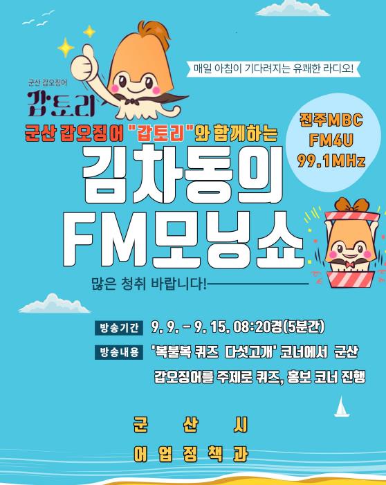 시는 특히 김차동 진행자의 따뜻한 진행과 청취자들의 소통 속에 군산 갑오징어의 매력이 더욱 친근하게 전달될 것으로 기대하고 있다.