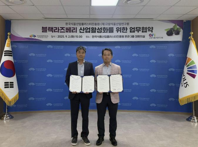 ![]() 고창식품산업硏-한국식품산업클러스터진흥원, 블랙라즈베리추출물 공동활용 협약 |
