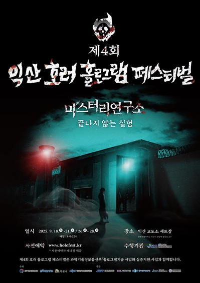 또한, 익산을 대표하는 홀로그램 기업들의 최신 기술을 직접 체험할 수 있는 B2B 체험관과 관람객이 참여할 수 있는 다양한 이벤트도 준비돼 한층 오싹하고 몰입감 있는 축제를 만들어갈 예정이다.