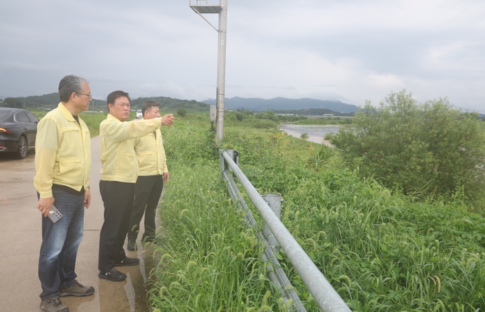 이학수 시장은 이날 새벽부터 재해 대응 공무원들과 함께 감곡면 유정리 논콩 재배지 침수 현장과 정읍천 홍수특보 지점을 방문해 피해 상황을 직접 확인했다.
