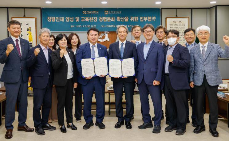 전남대 이근배 총장은 “대학이 가진 전문성과 교육청의 현장 경험이 만나 시너지 효과를 낼 것으로 기대한다”며 “지역사회 전반에 청렴 의식이 확산될 수 있도록 적극 협력하겠다”고 밝혔다.