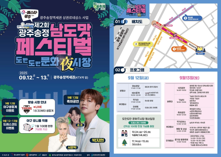 12일에는 오후 6시부터 미디어 문주에서 기아타이거즈 야구 경기 생중계와 1913송정역시장과 광산로 일대(장터국밥∼풋젠)에서 야시장이 열려 시장 음식과 함께 응원전을 펼치며 축제 분위기를 만끽할 수 있다.