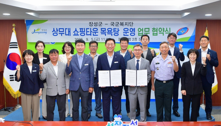 ![]() 장성군이 지난 5일 군청 상황실에서 국군복지단과 업무협약을 맺었다 |