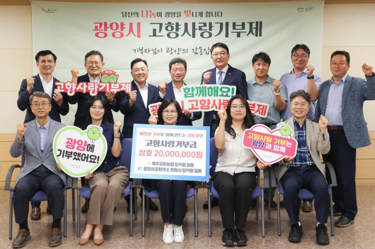 고권진 제주양돈농협 조합장은 “광양과 제주가 지리적으로 가까운 곳은 아니지만, 마음을 잇는 고향사랑기부제를 통해 지역 간의 상생 발전과 교류가 더욱 활발해지기를 기대한다”며 “앞으로도 나눔 활동을 꾸준히 이어가겠다”고 말했다.
