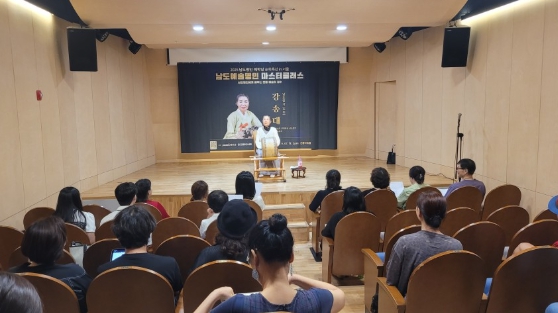 이번 남도명인예학당은 ▲서화(문인화, 한국화) ▲소리(강강술래, 남도잡가, 닻배노래, 엿타령) ▲북놀이 ▲씻김굿(장단, 소리) 등 전통예술의 핵심 분야를 아우르는 명인들이 진행하는 교육이며, 실기 중심의 심화 교육으로 구성됐다.