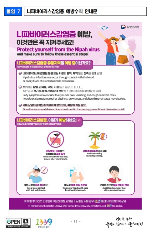 ![]() 니파바이러스감염증 감염예방수칙 포스터 |
