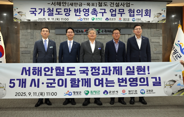 5개 시군은 11일 오전 11 영광군청에서 ‘서해안철도 국정과제 실현을 위한 5개 시군 협의회’를 개최하고, 서해안철도의 국가철도망 구축계획 반영과 건설 실현을 위한 공동 대응에 나서기로 했다.