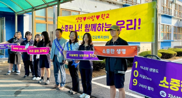 캠페인 첫날은 압해중학교 학생, 교직원, 압해파출소, 신안군정신건강복지센터가 함께 ‘등교 맞이’ 자살예방 홍보 활동을 펼쳤다. 등굣길 학생들에게 ‘자살예방상담전화 109’와 청소년 모바일 상담 ‘다들어 줄개’를 적극적으로 안내하며 청소년 자살예방 인식 개선에 대한 중요성을 강조했다.