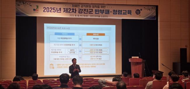강진원 강진군수는 “이번 교육이 청렴에 대한 마음가짐을 다시금 점검하고, 군정 전반에 청렴한 조직문화를 확산시키는 계기가 되길 바란다”며 “앞으로도 부패와 갑질을 근절하고 청렴한 문화가 뿌리내릴 수 있도록 지속적인 교육과 제도 개선을 이어가겠다”고 말했다.