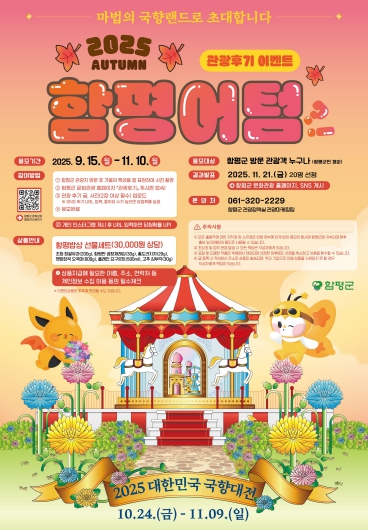 ![]() 함평의 가을 매력 전국에 알린다… ‘함평어텀’ 후기 이벤트 개최 |