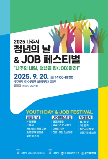 ![]() 나주시가 오는 20일 빛가람호수공원에서 청년의 날과 연계한 ‘제11회 잡(JOB)페스티벌’을 개최한다 |