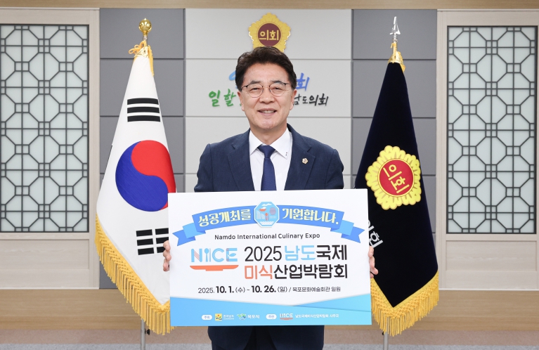 이날 김 의장은 “남도의 핫한 먹거리와 특별한 경험이 오는 10월 목포에서 펼쳐진다”며 “남도의 맛과 멋이 세계로 향하는 ‘2025 남도국제미식산업박람회’가 도민 여러분과 함께 성공적으로 개최되기를 기원한다”고 말했다.