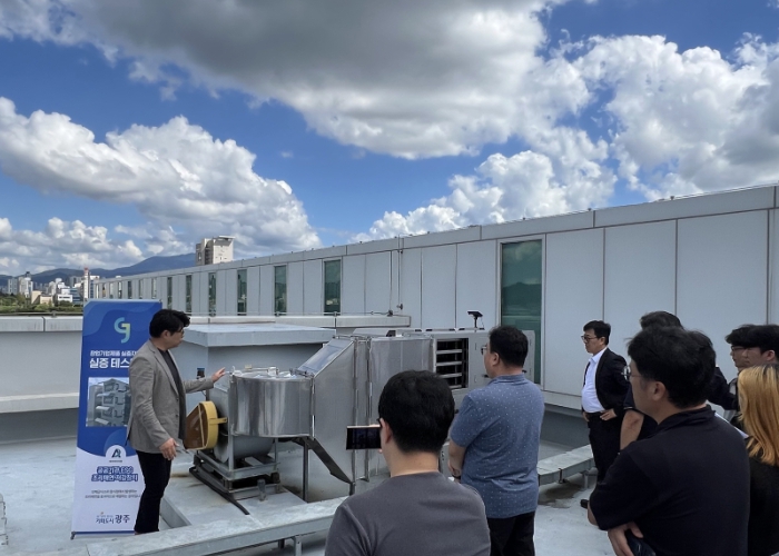 광주광역시는 지역 창업기업인 에어데이터랩㈜이 개발한 ‘이에스지(ESG) 조리매연 저감장치’의 실증 현장을 소개하는 ‘테크니컬 투어’를 지난 11일 오후 광주보건환경연구원에서 개최했다.