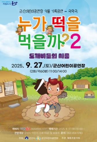 국악극 '누가 떡을 먹을까? 2 – 도깨비들의 씨름'사전예약은 9월 17일 오전 10시부터 티켓링크를 통해 지정좌석제로 진행되며, 1인당 최대 4매까지 예약 가능하다.