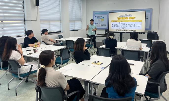![]() 나주시가 전남운전면허시험장에서 ‘경이로운 靑春’ 힐링 프로그램(웃음 치료)을 진행하고 있다. |