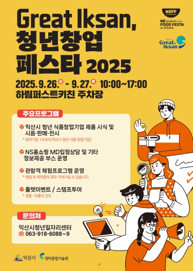 익산시는 '그레이트 익산(Great Iksan) 청년창업 페스타 2025'를 오는 26~27일 하림산업 퍼스트키친 야외광장에서 개최한다고 16일 밝혔다.
