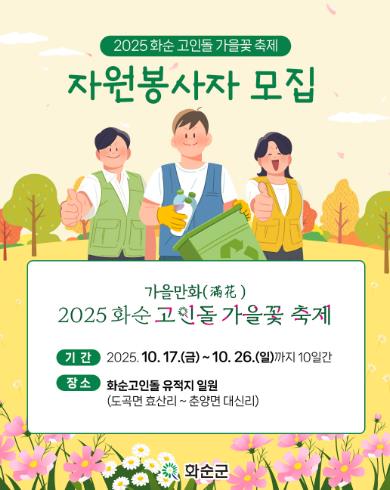 ![]() 2025 화순 고인돌 가을꽃 축제 자원봉사 모집 안내문 |