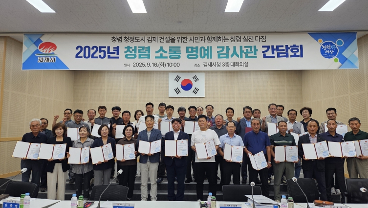 한편, 시는 국민권익위 종합청렴도 평가에 대응해 ‘더 특별한 내일을 꿈꾸는 청정 청렴도시 김제’를 비전으로 삼고, '청렴 톡! 공감 톡!', 청렴정책추진단, 청렴 24.7 라디오 방송 등 다양한 시책을 통해 부패 제로화를 향한 노력을 이어가고 있다.