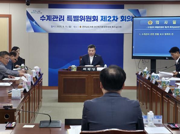 이날 회의는 정영균 위원장(더불어민주당·순천1)을 비롯한 특별위원들과 김정섭 전라남도 환경산림국장 등이 참석한 가운데, 수계관리기금 및 댐 주변 주민지원사업 등 추진사항에 대한 보고 청취와 질의응답 순으로 진행됐다.