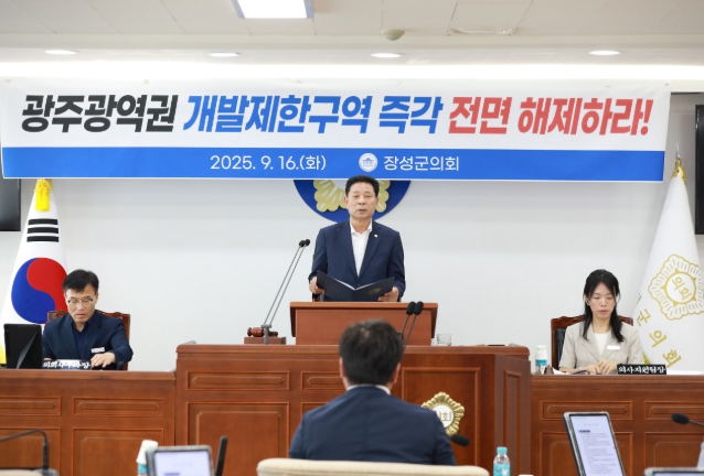 심민섭 의장은 건의안을 통해 “정부는 지역 불균형을 심화시키고 지방소멸을 가속화하는 광주 광역권 개발제한구역을 즉각 전면 해제해야 한다”며, “지역 발전에 대한 사항을 지방정부가 결정할 수 있도록 모든 권한을 자치단체에 이양할 것”을 강력히 촉구했다.