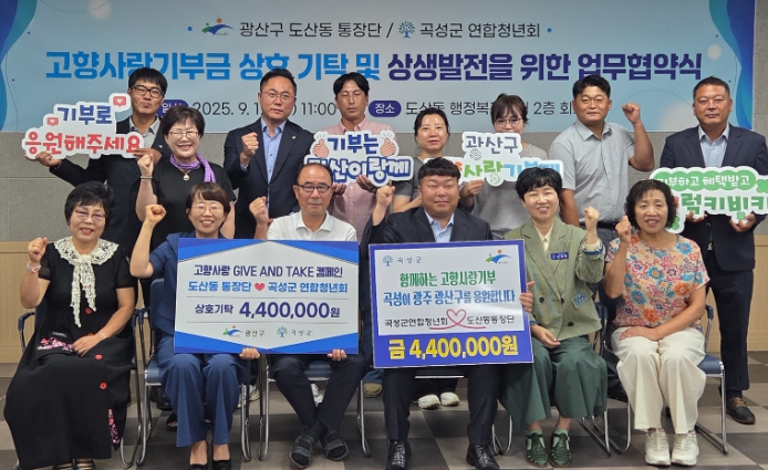 박창곤 도산동 통장단장은 “상호 기부에 참여해 준 모든 분께 감사드린다”며 “이번 협약을 통해 각 지역이 서로 상생하고 발전할 수 있도록 적극 협력하겠다”고 말했다.