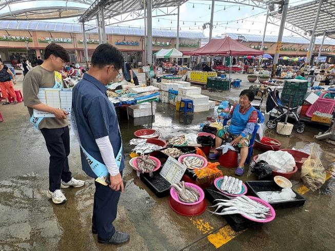 ![]() 지난번 수산물 소비 촉진 캠페인 중 원산지 표시 홍보 및 지도 중인 모습 |