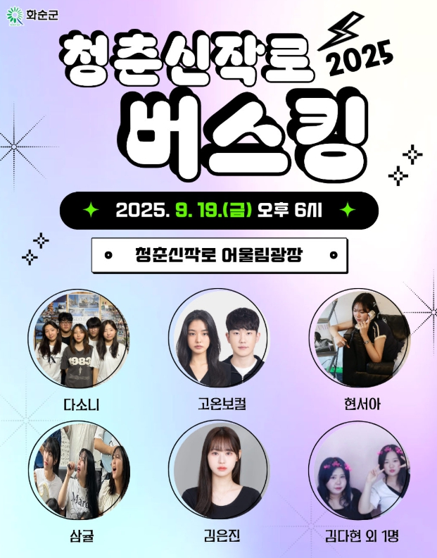 이번 주에는 다양한 개성과 감성을 지닌 아티스트들이 참여한다. ▲색소폰 연주로 깊은 선율을 전할 ‘다소니’ ▲대중가요로 무대를 채워줄 ‘고온보컬’ ▲어쿠스틱 감성의 무대를 선보일 ‘현서아(개인)’ ▲통기타와 카혼 연주로 따뜻한 울림을 더할 ‘삼귤’ ▲감미로운 발라드로 무대를 물들일 ‘김은진(개인), 김다현팀’이 차례로 무대에 올라 기량을 선보일 예정이다.