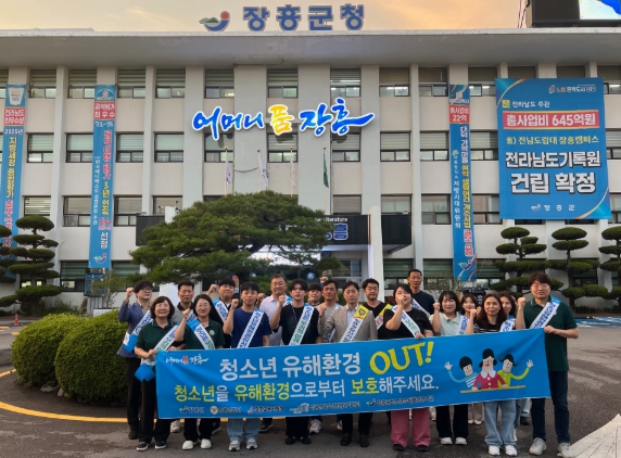 한편 장흥군은 청소년 탈선 행위 예방과 보호 의식 확산을 위해 정기적으로 학교 주변 및 번화가를 중심으로 유해환경 단속과 캠페인을 실시하고 있다.