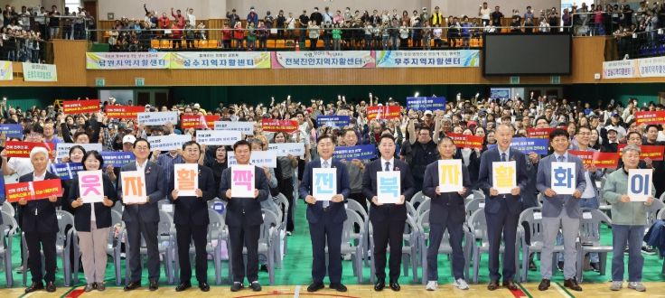 ![]() 18일 정읍시 국민체육센터에서 열린 2025 전북자활 어울한마당에 김관영 도지사와 임승식‧염영선 도의원, 정읍시장 및 도내 17개 지역자활센터 종사자와 참여자를 비롯해 약 1,800여명이 참석한 가운데 퍼포먼스를 하고 있다. |