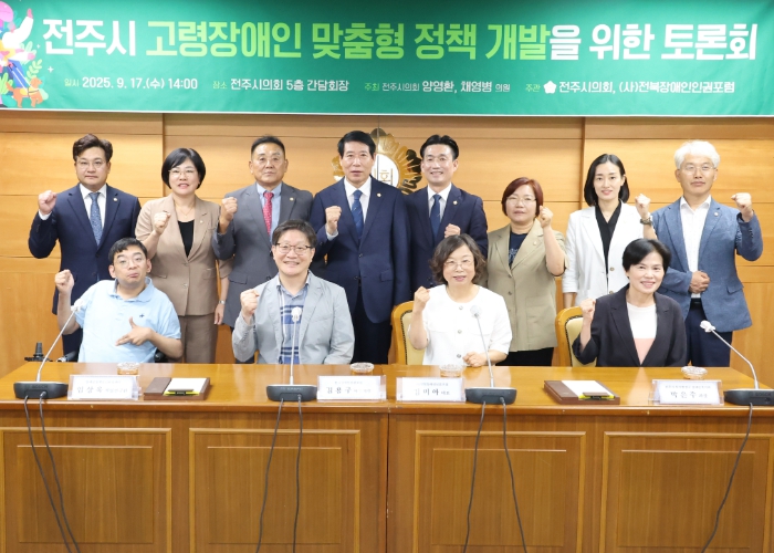 사회를 맡은 채영병 의원은 “고령장애인은 노화와 장애라는 이중적 어려움에 직면해 있다”며 “이번 토론회를 통해 전주시가 선제적으로 정책을 마련해 시민 누구도 돌봄 사각지대에 놓이지 않도록 하겠다”고 말했다.