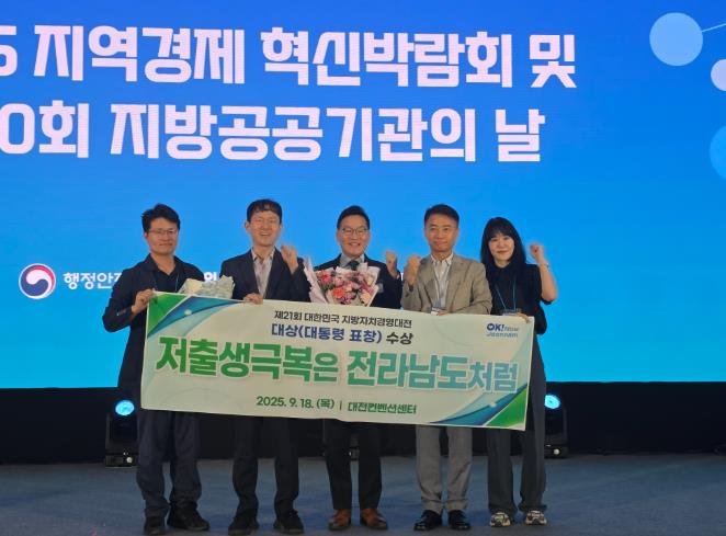 2024년 합계출산율 1.03명으로 전국 1위를 기록한 데 이어 2025년 2분기 합계출산율도 1.04명으로 전국에서 유일하게 1.0명을 넘기며 1위를 유지한 전남도의 적극적이고 차별화된 저출생 극복 정책이 전국적으로 인정받은 것이다.