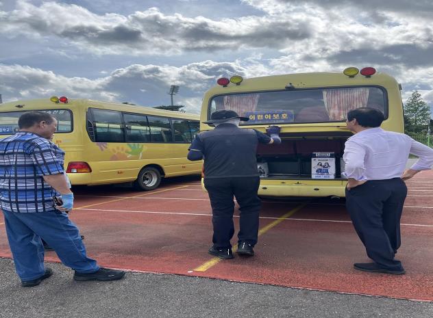 ![]() 교육지원청, 도로교통공단, 안전점검 관계자들이 차량을 점검하고 있다. |