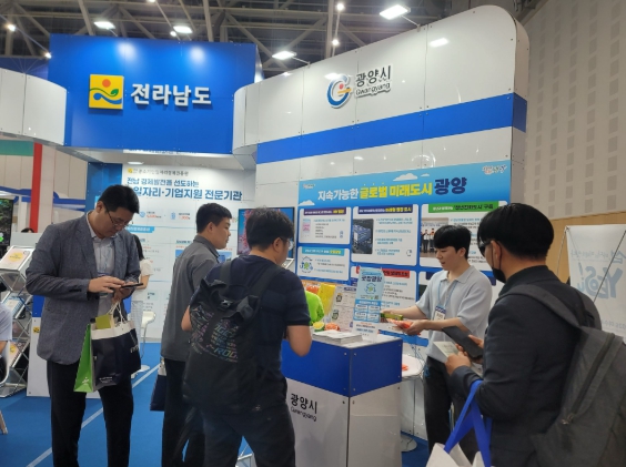 광양시는 ‘지속가능한 글로벌 미래도시 광양’을 주제로 전시 부스를 운영하며 ▲전국 최초 모바일 원스톱 행정서비스 ‘MY광양’ ▲철강 및 신산업 생태계 조성 ▲지역거점별 관광자원 개발정책 등을 소개했다.
