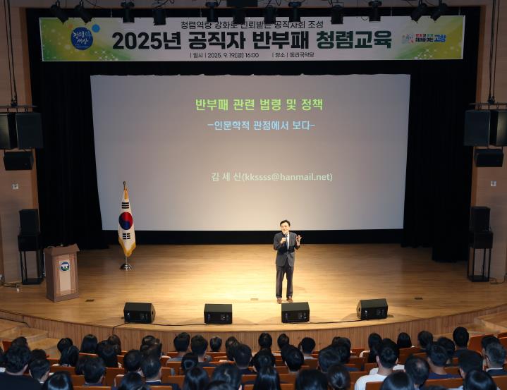 김세신 원장(국민권익위 청렴연수원)을 초청해 공정하고 투명한 조직문화를 만들고 공직자의 청렴 실천 역량을 강화하기 위한 목적으로 기획됐다.