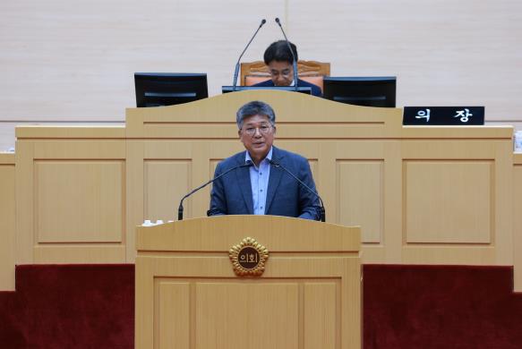 ![]() 신의준 의원(완도2, 더불어민주당)이 본회의장에서 해양수산국장에게 도정질문을 하고있다. |