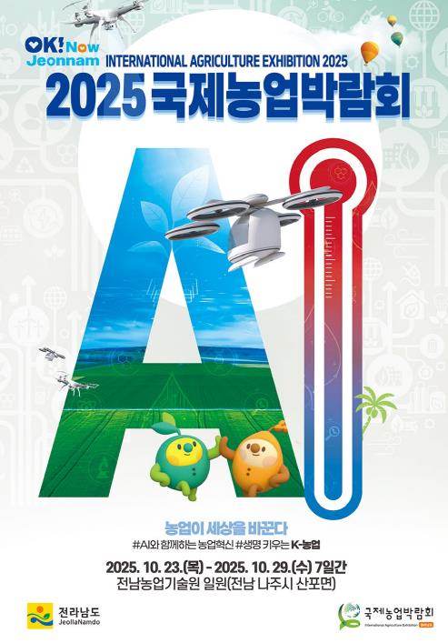![]() 오는 10월 23일부터 29일까지 전남농업기술원에서 ‘2025 국제농업박람회’가 열린다. 사진은 ‘2025 국제농업박람회’ 포스터. |